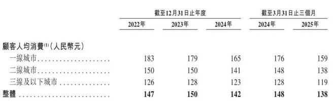 在截至2025年6月9日的145家直营店中,河南区域拥有53家门店,除河南外的全国市场拥有92家门店。按城市等级划分,除在一线城市开设31家门店外,巴奴在二线及以下城市共开设114家门店,截至2025年6月9日占餐厅总数的78.6%。2025年第一季度,一线城市门店的门店经营利润率为20.7%,二线及以下城市门店经营利润率为24.5%。人均消费方面,截止到2025年3月31日,巴奴顾客平均人均消费为138元,较上年同期的148元下降了10元。