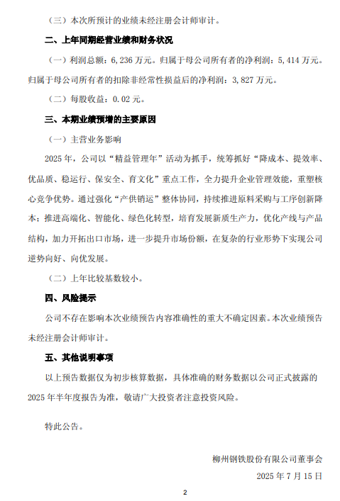 柳钢股份7月14日晚间发布业绩预告配资门户网,预计2025年上半年归母净利润3.4亿元至4亿元,同比增长530%-641%;扣非净利润预计3.15亿元至3.75亿元,同比增长729%-887%。